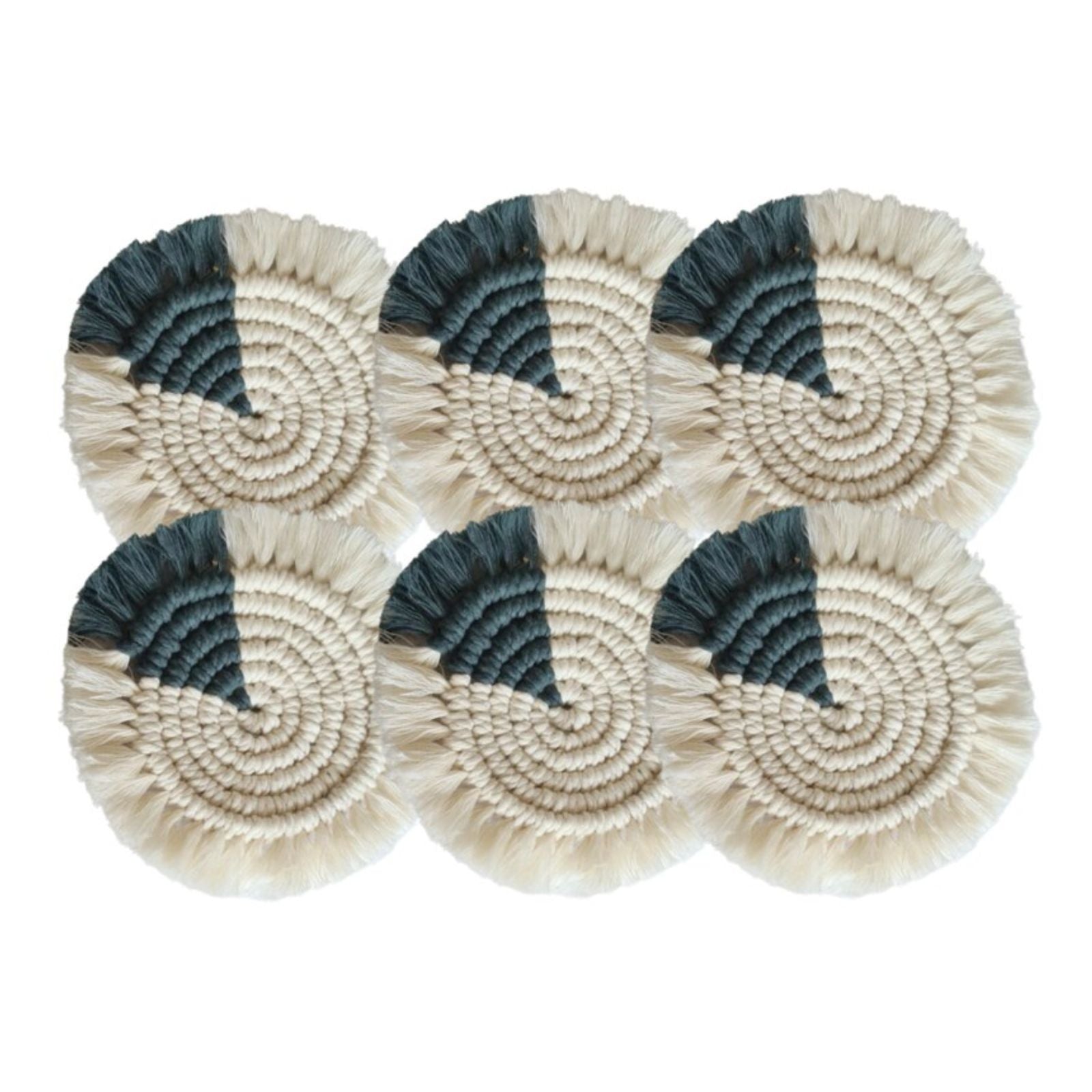 Macrame Round Coasters Bohemian Style, Handmade, for Coffee Mugs, Tea Cups, Cocktail Glasses (6Pcs, OffWhite-Green)