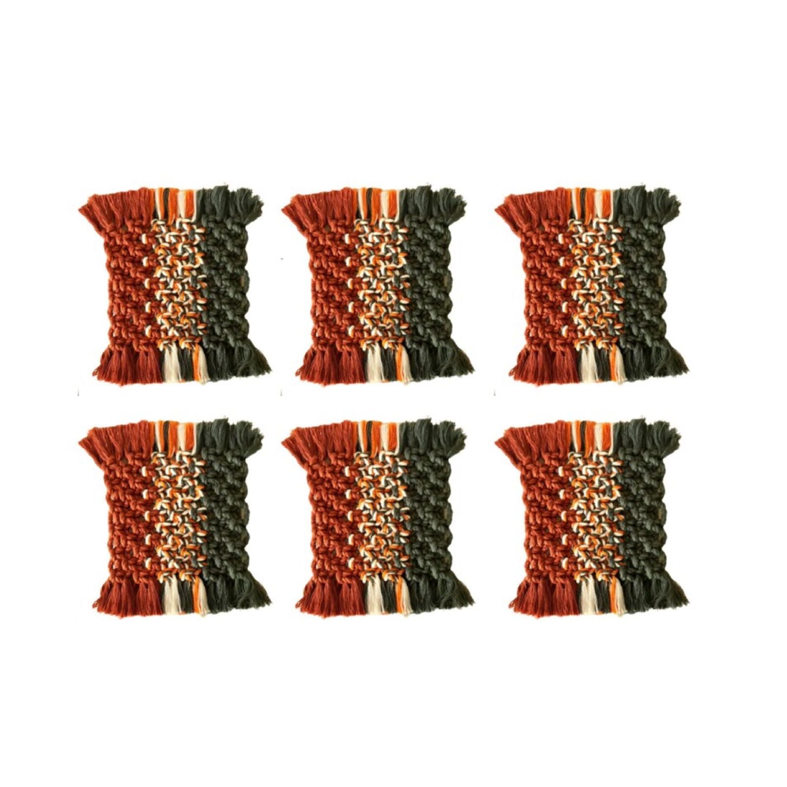 Macrame Round Coasters Bohemian Style, Handmade, for Coffee Mugs, Tea Cups, Cocktail Glasses (6Pcs, Red-Green)